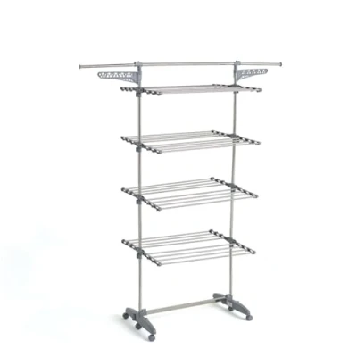 KITCHEN MOVE 30 m Extra Clothes Dryer with 20 Stainless Steel Pegs and 10 Hangers, Plastic, Grey, L168xl68xH160 cm