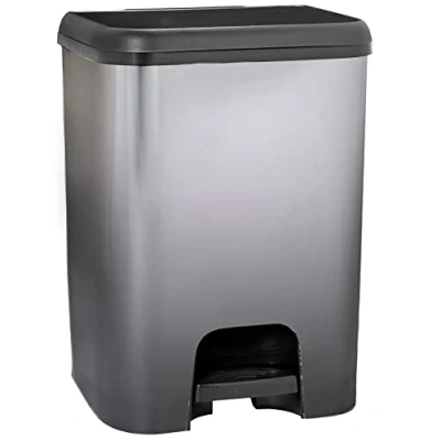 Kitchen pedal bin with ring to attach the bin bags 28 L Seattle model plastic IML metal look. Dimensions: 33 x 30 x 45 cm. Dimensions bin lid up 33 x 30 x 68 cm. Weight: 1.25 kg. Made in Spain Plastic body and lid. Includes: a strapping to hold your bin bag, and a plastic protective edge for protecting fragile floors with non-slip system. Pedal bin with manual foot pedal. Convenient extended opening system. Solid pedal mechanism Very easy to use. Easy to open thanks to its wide pedal. Easy to move. Easy to clean. Practical and hygienic.