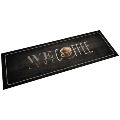 Kitchen Rug Washable Coffee Text 60x180 cm Velvet Vidaxl