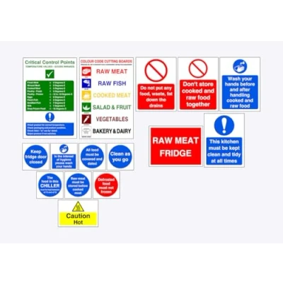 Kitchen safety signs Pack Of 15 - Various sizes Self adhesive stickers All our signs are UV resistant meaning they will not fade in sunlight. Our vinyl stickers are temperature resistant from -35°C to +80°C. Complete Kitchen Safety Signs Sticker Packs 15 pack - Compliance in Commercial Kitchens, Hygiene Signage Kit, Laminated Self Adhesive Stickers