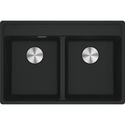 Sink type: without drainer. Material: Fragranite. Installation method: built-in. Color: black matt. Reversible: no. Suggested place for the tap: yes. Drain included: yes. Drain type: plug. Siphon included: yes. Number of tap holes: 7 - milled. Hole made for the dispenser: no. Drain: 3 1/2". Minimum width of the foundation: 800 mm. Cutout in the countertop: 740 x 498 mm. External dimensions (length x width): 760 x 510 mm. Number of bowls: 2. Dimensions of the bowl (length x width x height): 2 x (346 x 400 x 200 mm)., Manufacturer: Franke