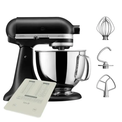 The KitchenAid KSM125 Artisan 4.8L Tilt-Head Stand Mixer in Matte Black is a perfect blend of style, functionality, and durability. This iconic kitchen appliance, known for its sweeping curves and rounded head, not only enhances the aesthetic of your kitchen but also delivers exceptional performance.