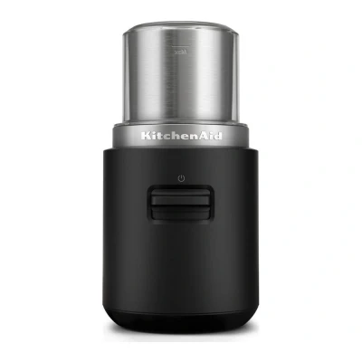 The KitchenAid Go Cordless Coffee Grinder encourages freedom around the kitchen when creating your barista grade coffee from the comfort of your own home. Designed to be completely portable, it has a rechargeable battery that offers 6 minutes of blending time.With a sleek, matte black finish, the KitchenAid Go Cordless Coffee Grinder expertly grinds your coffee beans to the perfect fineness for your desired strength of coffee. It is extremely useful in the kitchen without the restriction of a cord.The stainless steel blades will mill your coffee beans effortlessly and with power to ensure seamless grinding. Complete with a 113g bowl with top cover, this Coffee Grinder can pulverize up to 12 coffees worth of beans at a time, meaning you can save some for later, thus lengthening the life of your rechargeable battery.This model does not include a battery.Dimensions: 21.4 (H) x 13.4 (W) x 15.1 (D) cm.Made from plastic with stainless steel blades.