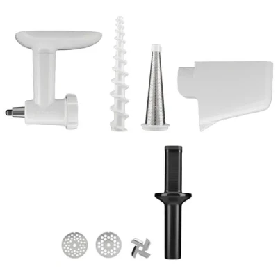 Complementing the meat grinder, the KitchenAid Fruit and Vegetable Strainer adds an extra layer of functionality to your preparation tasks. This strainer comes with a specialized cone and tray to effectively remove peels and seeds, giving you the ability to create perfectly smooth purées for sauces, soups, and baby food. The combination of grinding and straining makes it possible to explore a world of culinary creativity.