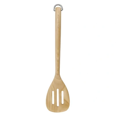 Crafted from environmentally friendly Birchwood, this KitchenAid Birchwood Slotted Turner is ideal for turning and tossing foods or as a substitute wooden spoon for stirring and sauteing. The slotted head also allows excess water to drain away. Safe to use on all types of cookware and bakeware, including ceramic, cast iron and non-stick, this slotted turner also includes a handy stainless steel hanging hook.Utensil length: 32.5cm.This KitchenAid wooden utensil is dishwasher safe, although handwashing is recommended for long-lasting performance.The KitchenAid Birchwood Slotted Turner is supplied with a 1 year manufacturer's warranty.