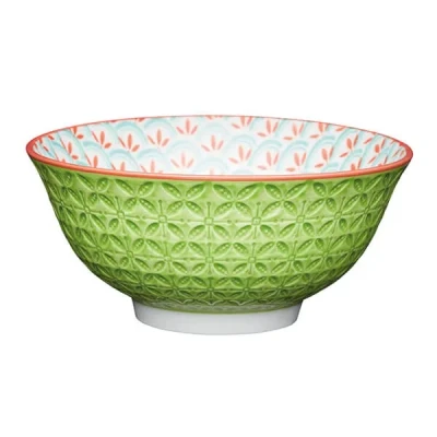 KitchenCraft 16cm Ceramic Bowl Bright Green Geometric Print
