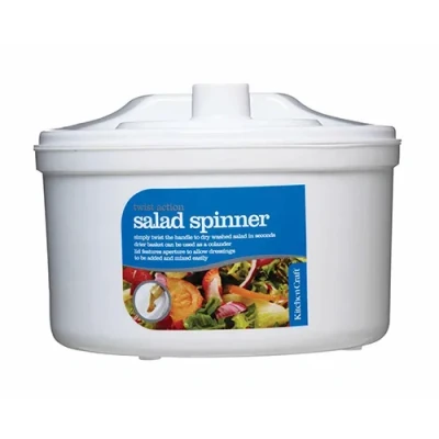 General description Twist action salad spinner with an enclosed drying basket, designed for quick and easy drying of washed salad. It features an aperture for adding salad dressing while spinning, ensuring even coating throughout the salad, ready for serving. Technical specifications Size: 22.5 cm (9 inches)