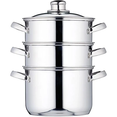 KitchenCraft 3 Tier Food Steamer Pan/Stock Pot in Gift Box, Induction Safe, Stainless Steel, 18 cm (7"), Silver