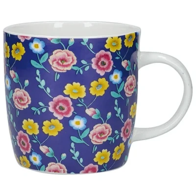 The KitchenCraft China 425ml Navy Floral Barrel Shaped Mug is perfect for tea, coffee or even a hot chocolate.Made from china and with a 425ml capacity, this barrel-shaped mug is adorned with floral illustrations on a blue background and has an ample handle for a comfortable grip.This KitchenCraft Navy Floral Mug is both microwave and dishwasher safe and is part of a large collection of mugs in various designs.
