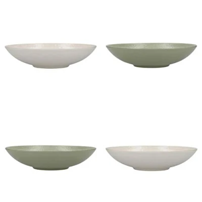 ManoManoGeneral description This set of 4 KitchenCraft stoneware ripple green and cream coupe bowls is perfect for enjoying pasta, rice, and noodles at home. The versatile bowls feature a ripple pattern, including 2 green and 2 cream bowls in the set. Packaged in a lovely gift box, they make an ideal gift for friends and family. Technical specifications Material: Lead-free stoneware Diameter: 22 cm / 8 inches Chip and crack resistant Usage Suitable for heating and warming food in the microwave Dishwasher safe for easy and convenient cleaning Other information Complete with a 12-month KitchenCraft guarantee