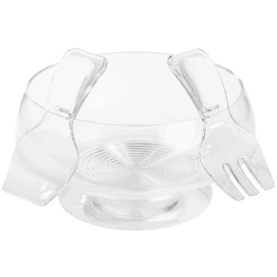 FEELING THE HEAT? Keep your cucumbers slices cool, lettuce crisp and fruit salads chilled with this clever picnic salad bowl BUILT-IN ICE COMPARTMENT: just fill the base with crushed ice or cubes, then add your salad to enjoy long-lasting chilled freshness SMART LOOKS: use this elegant, crystal clear set for picnics, garden parties, indoor buffets and other formal or informal occasions VIRTUALLY SMASH PROOF: the salad bowl with servers is made of robust acrylic, so it looks as good as glass, but is less likely to break INCLUDES: a bowl, an ice compartment cover and 2 salad servers, which hook onto the rim. Bowl diameter: 25 cm (10"). 12 month guarantee