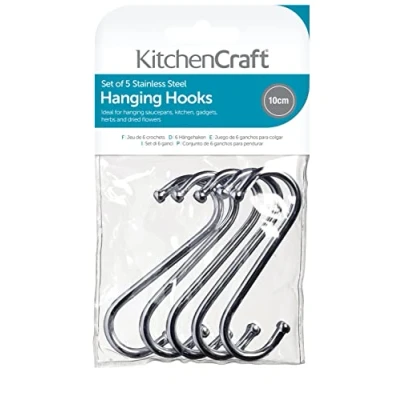 KitchenCraft S Hooks, Chrome Plated Metal, Large (10 cm), Pack of 5