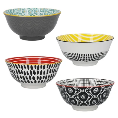 KitchenCraft Set of 4 Ceramic Bowls Monochrome Designs