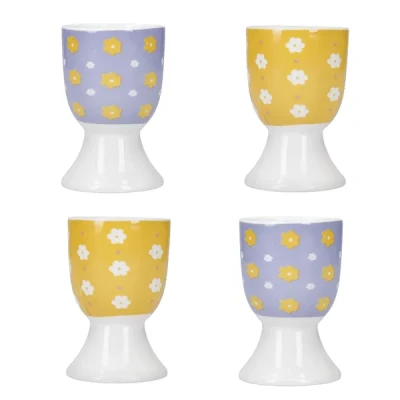 Harts of SturThis KitchenCraft set of 4 egg cups features soleada floral designs and are perfect for your boiled eggs and dipping soldiers. Two of the egg cups have a blue background with yellow and white flowers and the other two have a yellow background with white flowers.Perfectly balanced these egg cup make a great edition to your breakfast table and is easy to use and clean.Suitable for dishwasher cleaning and complete with a 12 month manufacturers guarantee.