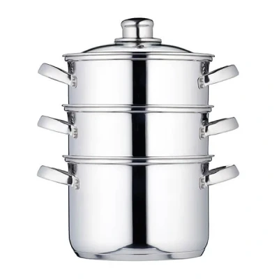 An essential item in cooking and promoting a healthy diet and lifestyle, the Kitchen Craft Three Tier Steamer is a beautifully designed piece of cookware. Steaming helps retain vitamins, minerals, flavour, colour, and texture in food, often lost when boiling and the integral three tier system allows complete flexibility for cooking different foods. Three different foods can be cooked at the same time or simply start with one tier, then add another, and then another, for phasing different cooking times according to the food type. Featuring a vented glass lid, wide riveted side handles, and high quality mirror polished stainless steel interior and exterior, the steamer is an easy and simple item to use in everyday cooking.Dishwasher safeSuitable for all stove top heat sources including induction15 Year guarantee