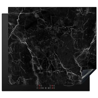 KitchenYeah© Induction Hob Cover Protector Mat 20.1"x23.2" / 59x51 cm Kitchen Universal Ceramic Covers for Electric Cookers Vinyl Marble Black White Texture Look