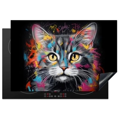 KitchenYeah© Induction Hob Cover Protector Mat 20.1"x30.3" / 77x51 cm Kitchen Universal Ceramic Covers for Electric Cookers Vinyl Cat Graffiti Animals Colours Grey