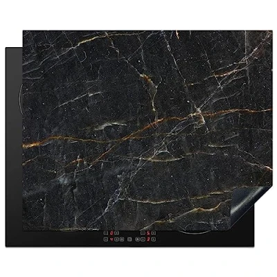 KitchenYeah© Induction Hob Cover Protector Mat 20.5"x25.6" / 65x52 cm Kitchen Universal Ceramic Covers for Electric Cookers Vinyl Marble Black Gold Grey Texture