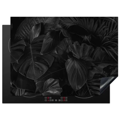KitchenYeah© Induction Hob Cover Protector Mat 20.5"x27.6" / 70x52 cm Kitchen Universal Ceramic Covers for Electric Cookers Vinyl Leaves Black Plants Dark