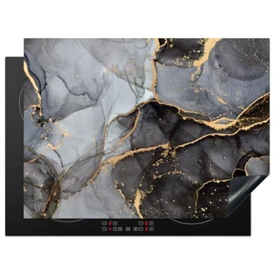 KitchenYeah© Induction Hob Cover Protector Mat 20.5"x27.6" / 70x52 cm Kitchen Universal Ceramic Covers for Electric Cookers Vinyl Marble Abstract Gold Grey