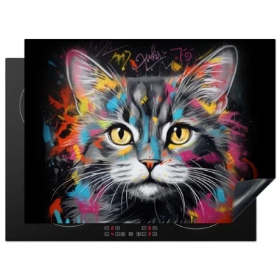 KitchenYeah© Induction Hob Cover Protector Mat 20.5"x28" / 71x52 cm Kitchen Universal Ceramic Covers for Electric Cookers Vinyl Cat Graffiti Animals Colours Grey