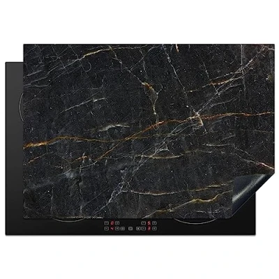 KitchenYeah© Induction Hob Cover Protector Mat 20.5"x29.5" / 75x52 cm Kitchen Universal Ceramic Covers for Electric Cookers Vinyl Marble Black Gold Grey Texture