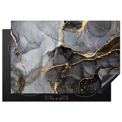 KitchenYeah© Induction Hob Cover Protector Mat 20.5"x30.7" / 78x52 cm Kitchen Universal Ceramic Covers for Electric Cookers Vinyl Marble Abstract Gold Grey