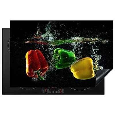 KitchenYeah© Induction Hob Cover Protector Mat 20.5"x31.9" / 81x52 cm Kitchen Universal Ceramic Covers for Electric Cookers Vinyl Pepper Vegetable Water Black Red