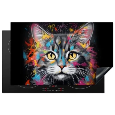 KitchenYeah© Induction Hob Cover Protector Mat 20.5"x33.5" / 85x52 cm Kitchen Universal Ceramic Covers for Electric Cookers Vinyl Cat Graffiti Animals Colours Grey