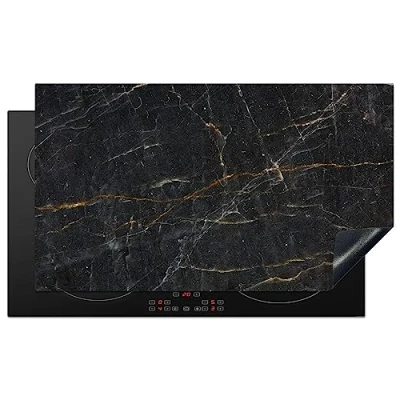 KitchenYeah© Induction Hob Cover Protector Mat 20.5"x35.4" / 90x52 cm Kitchen Universal Ceramic Covers for Electric Cookers Vinyl Marble Black Gold Grey Texture