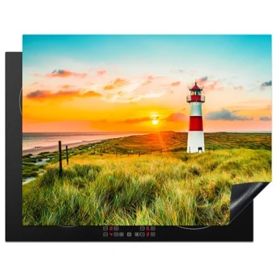 KitchenYeah© Induction Hob Cover Protector Mat 23.2"x30.3" / 77x59 cm Kitchen Universal Ceramic Covers for Electric Cookers Vinyl Lighthouse Nature Sun Landscape Grass Beach