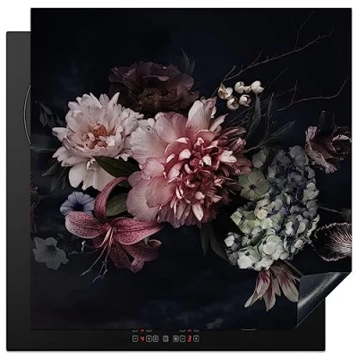 KitchenYeah© Induction Hob Cover Protector Mat 30.7"x30.7" / 78x78 cm Kitchen Universal Ceramic Covers for Electric Cookers Vinyl Flowers Vintage Pastel Pink White