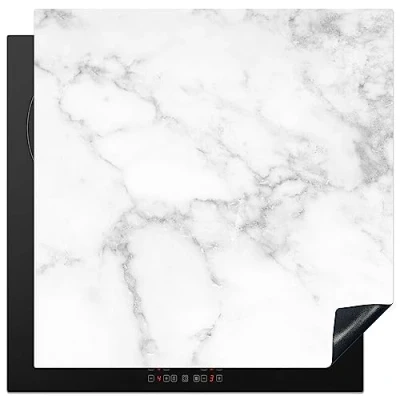 KitchenYeah© Induction Hob Cover Protector Mat 30.7"x30.7" / 78x78 cm Kitchen Universal Ceramic Covers for Electric Cookers Vinyl Marble Grey White Structure