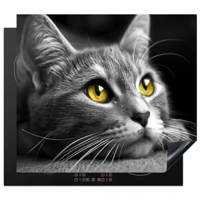KitchenYeah© Induction Hob Protector Mat 20.2"x22.9" / 58.3x51.3 cm Cooker Top Protectors Cover Ceramic Covers Electric Hobs Vinyl Cat Grey Animals