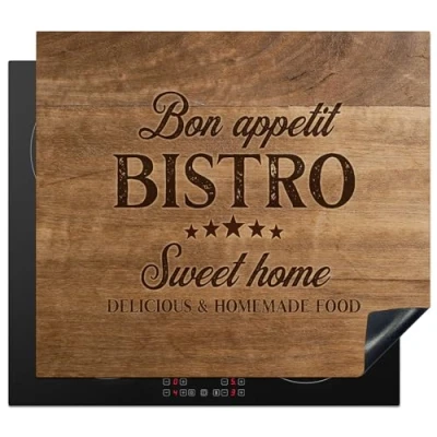 KitchenYeah© Induction Hob Protector Mat 20.2"x22.9" / 58.3x51.3 cm Stove Cap Top Cover Kitchen Cooker Covers for Electric Hobs Vinyl Quote Bistro Bon Appetit Sweet Home Wood Texture
