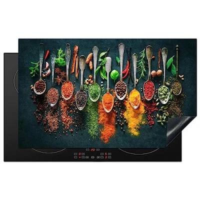 KitchenYeah© Induction Hob Protector Mat 20.3"x32.7" / 83x51.5 cm Cooker Top Protectors Cover Ceramic Covers Electric Hobs Vinyl Herbs Spices Spoons