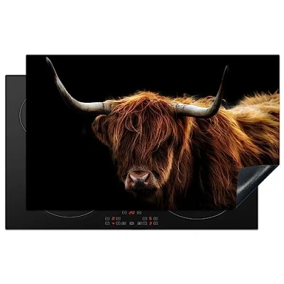 KitchenYeah© Induction Hob Protector Mat 20.3"x32.7" / 83x51.5 cm Cooker Top Protectors Cover Ceramic Covers Electric Hobs Vinyl Scottish Highlander Horns Black Animals Nature