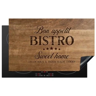 KitchenYeah© Induction Hob Protector Mat 20.3"x32.7" / 83x51.5 cm Stove Cap Top Cover Kitchen Cooker Covers for Electric Hobs Vinyl Quote Bistro Bon Appetit Sweet Home Wood Texture