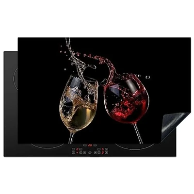 KitchenYeah© Induction Hob Protector Mat 20.3"x32.7" / 83x51.5 cm Stove Cap Top Cover Kitchen Cooker Covers for Electric Hobs Vinyl Red Wine White Glass Black