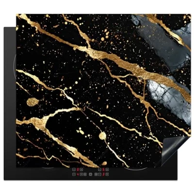 KitchenYeah© Induction Hob Protector Mat 20.5"x23.2" / 59x52 cm Stove Cap Top Cover Kitchen Cooker Covers for Electric Hobs Vinyl Marble Black Gold Texture