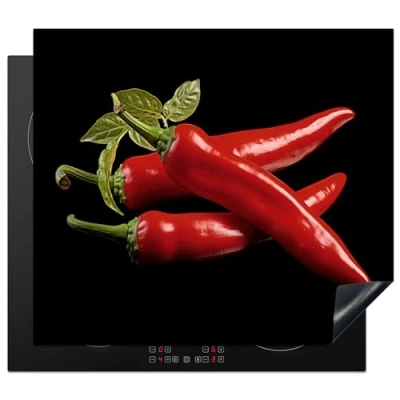 KitchenYeah© Induction Hob Protector Mat 20.5"x23.6" / 60x52 cm Cooker Top Protectors Cover Ceramic Covers Electric Hobs Vinyl Red Pepper Herbs Spices Black