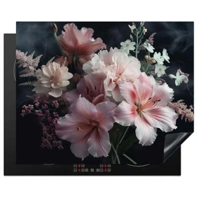 KitchenYeah© Induction Hob Protector Mat 20.5"x25.6" / 65x52 cm Cooker Top Protectors Cover Ceramic Covers Electric Hobs Vinyl Flowers Pink Vapour Plants