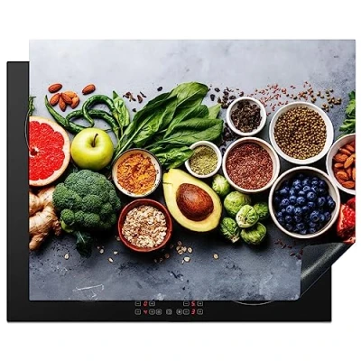 KitchenYeah© Induction Hob Protector Mat 20.5"x25.6" / 65x52 cm Cooker Top Protectors Cover Ceramic Covers Electric Hobs Vinyl Fruit Concrete Vegetables
