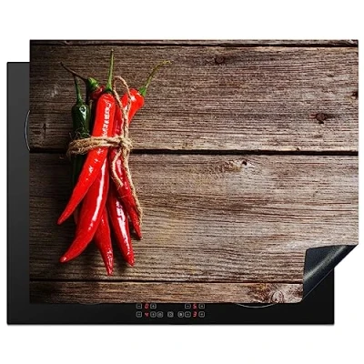 KitchenYeah© Induction Hob Protector Mat 20.5"x25.6" / 65x52 cm Cooker Top Protectors Cover Ceramic Covers Electric Hobs Vinyl Pepper Wood Spices Herbs Red