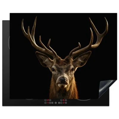 KitchenYeah© Induction Hob Protector Mat 20.5"x25.6" / 65x52 cm Stove Cap Top Cover Kitchen Cooker Covers for Electric Hobs Vinyl Deer Antlers Animal Brown Black