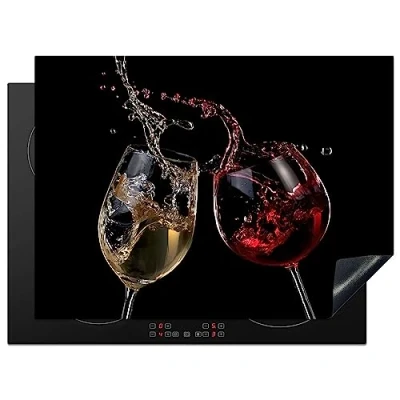 KitchenYeah© Induction Hob Protector Mat 20.5"x27.6" / 70x52 cm Stove Cap Top Cover Kitchen Cooker Covers for Electric Hobs Vinyl Red Wine White Glass Black