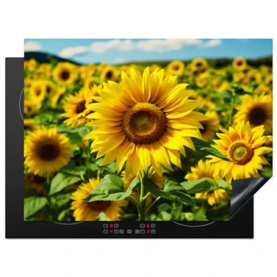 KitchenYeah© Induction Hob Protector Mat 20.5"x27.6" / 70x52 cm Stove Cap Top Cover Kitchen Cooker Covers for Electric Hobs Vinyl Sunflower Yellow Nature Flowers