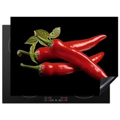 KitchenYeah© Induction Hob Protector Mat 20.5"x28" / 71x52 cm Cooker Top Protectors Cover Ceramic Covers Electric Hobs Vinyl Red Pepper Herbs Spices Black
