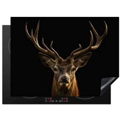 KitchenYeah© Induction Hob Protector Mat 20.5"x28" / 71x52 cm Stove Cap Top Cover Kitchen Cooker Covers for Electric Hobs Vinyl Deer Antlers Animal Brown Black