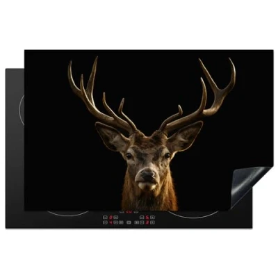 KitchenYeah© Induction Hob Protector Mat 20.5"x31.5" / 80x52 cm Stove Cap Top Cover Kitchen Cooker Covers for Electric Hobs Vinyl Deer Antlers Animal Brown Black